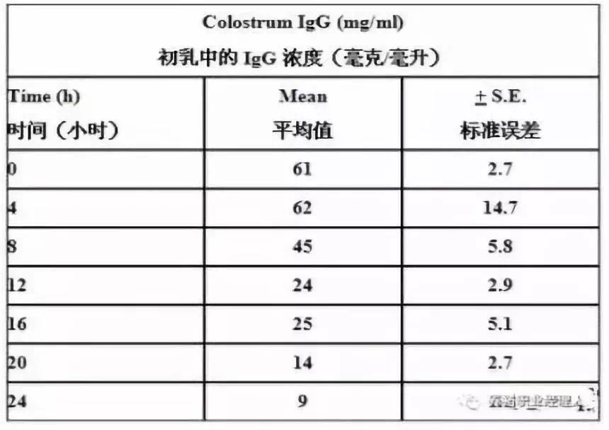 寄養(yǎng)其實(shí)對母豬和仔豬來講均是一種應(yīng)激,且寄養(yǎng)易導(dǎo)致疾病交叉感染,所以產(chǎn)房應(yīng)盡量減少寄養(yǎng),特別要嚴(yán)禁跨單元寄養(yǎng)。當(dāng)產(chǎn)后母豬泌乳量嚴(yán)重不足、產(chǎn)仔數(shù)過多、母性差、母豬體弱多病、有惡癖或甚至母豬死亡時(shí)才可考慮寄養(yǎng),寄養(yǎng)應(yīng)在仔豬出生后24小時(shí)內(nèi),并保證仔豬吃到充足初乳后進(jìn)行。由表1可以看出,初乳中的IgG濃度其實(shí)到了產(chǎn)后12小時(shí)只有剛產(chǎn)完時(shí)的一半都不到。產(chǎn)后24小時(shí)幾乎只有剛產(chǎn)完時(shí)的1/7的濃度。