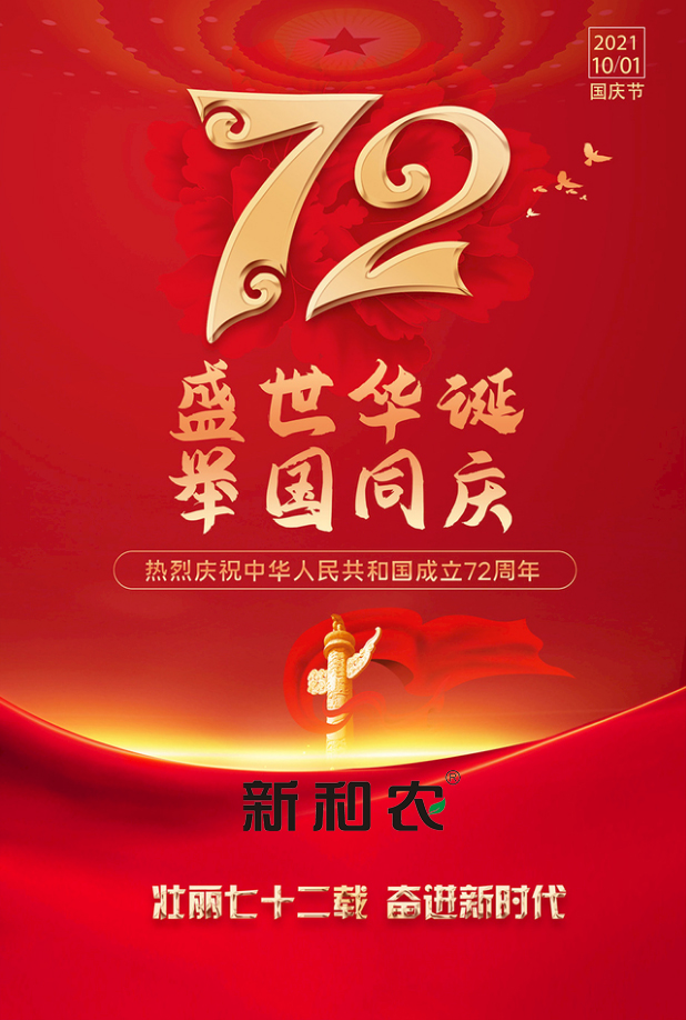 祖國是我們中華兒女的驕傲,尤其在國際局勢動蕩、新冠疫情肆虐的今天,我們更為祖國倍感自豪。國家強則民強,國家富則民富。在慶祝中華人民共和國成立72華誕的特殊時刻,全體新和農人用牢記使命獻禮祖國,追求員工幸福感,追求客戶獲得感、追求社會責任感。我們將立足畜牧業(yè),發(fā)展好畜牧業(yè),為國家興旺發(fā)達,為國民身體素質、智力提高不懈努力,實現(xiàn)夢想共同富裕。